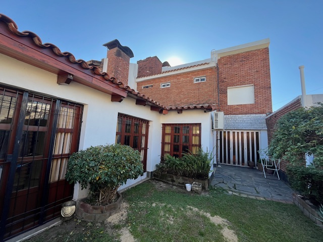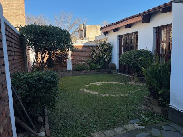 Casa de dos plantas, con cochera pasante, terreno libre, living, cocina, amplio estar comedor, cuarto de servicio, 3 dormitorios y 2 baños.